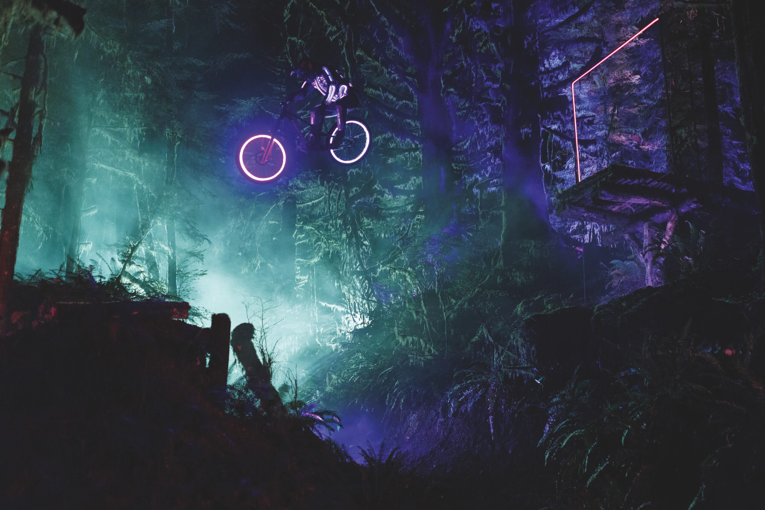 Captured almost entirely at night using cutting-edge cinematography, lasers, animation, and projection mapping, the film leads viewers on a surreal journey through ocean, river, and mountain landscapes. The world’s greatest athletes, adventurers, and thinkers appear as luminous figures, navigating through the natural world.